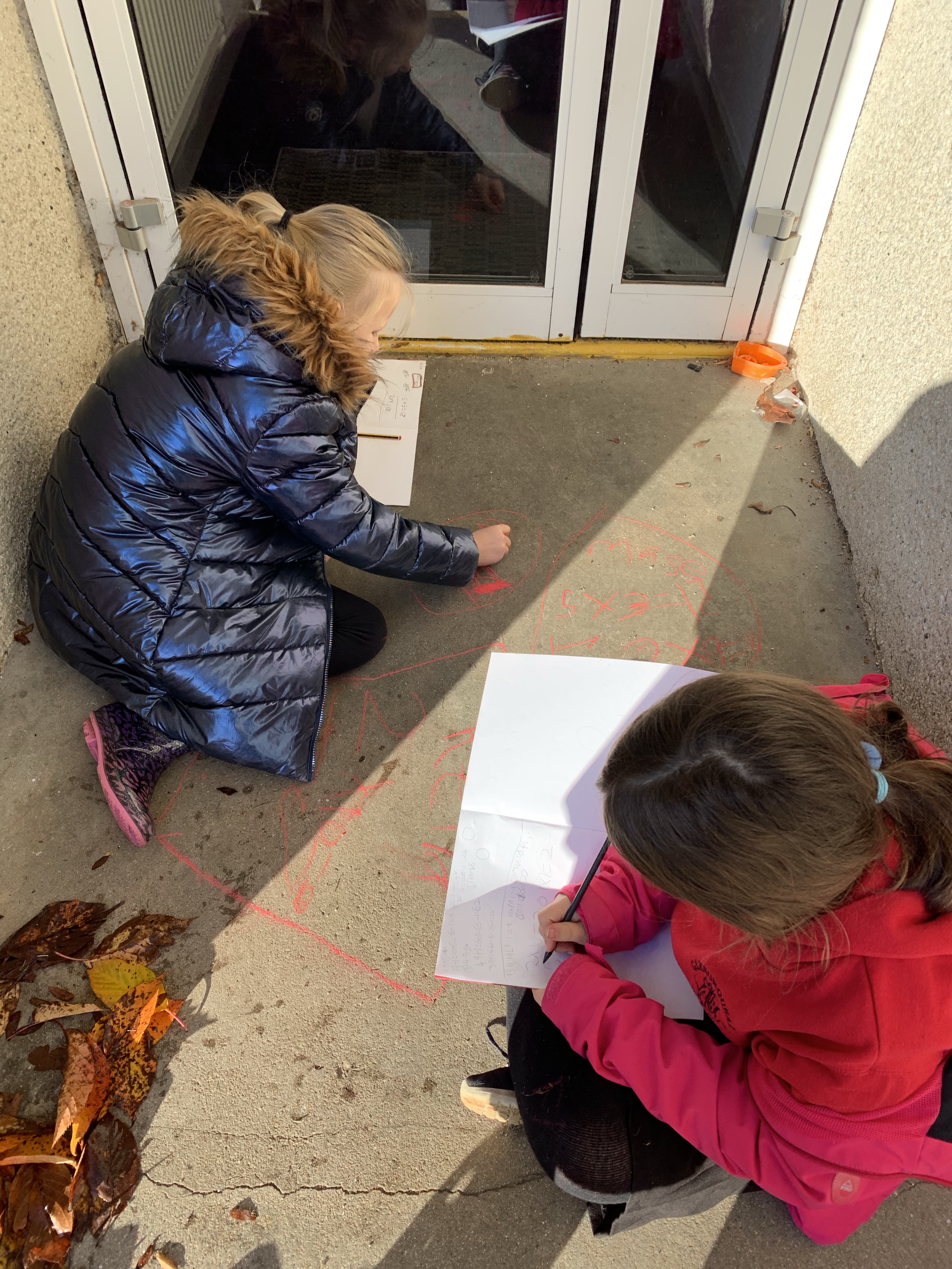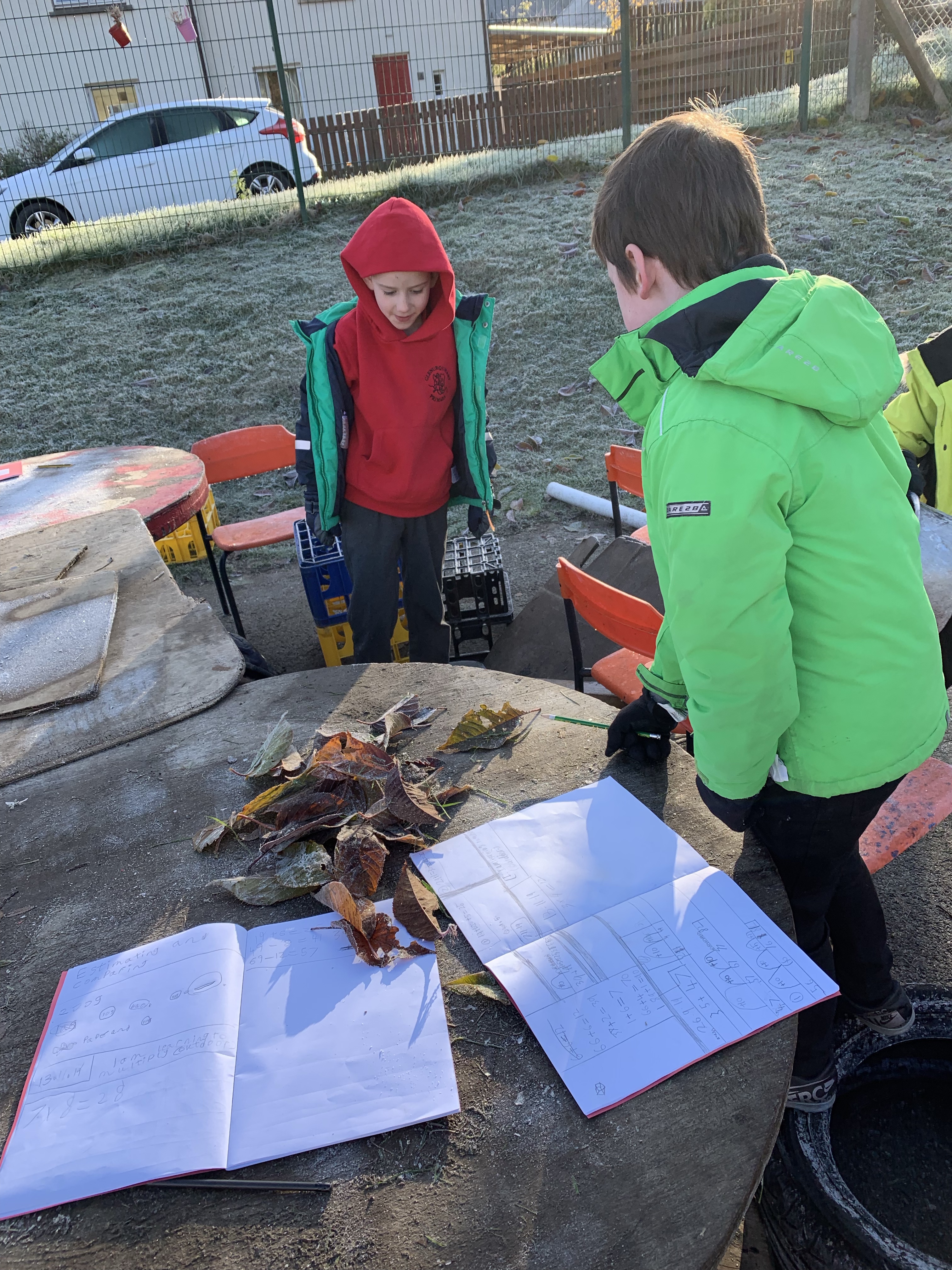 Over the past couple of weeks we have been enjoying some outdoor maths lessons. P4/5 have been making use of the fallen leaves to help us with our multiplication tables.