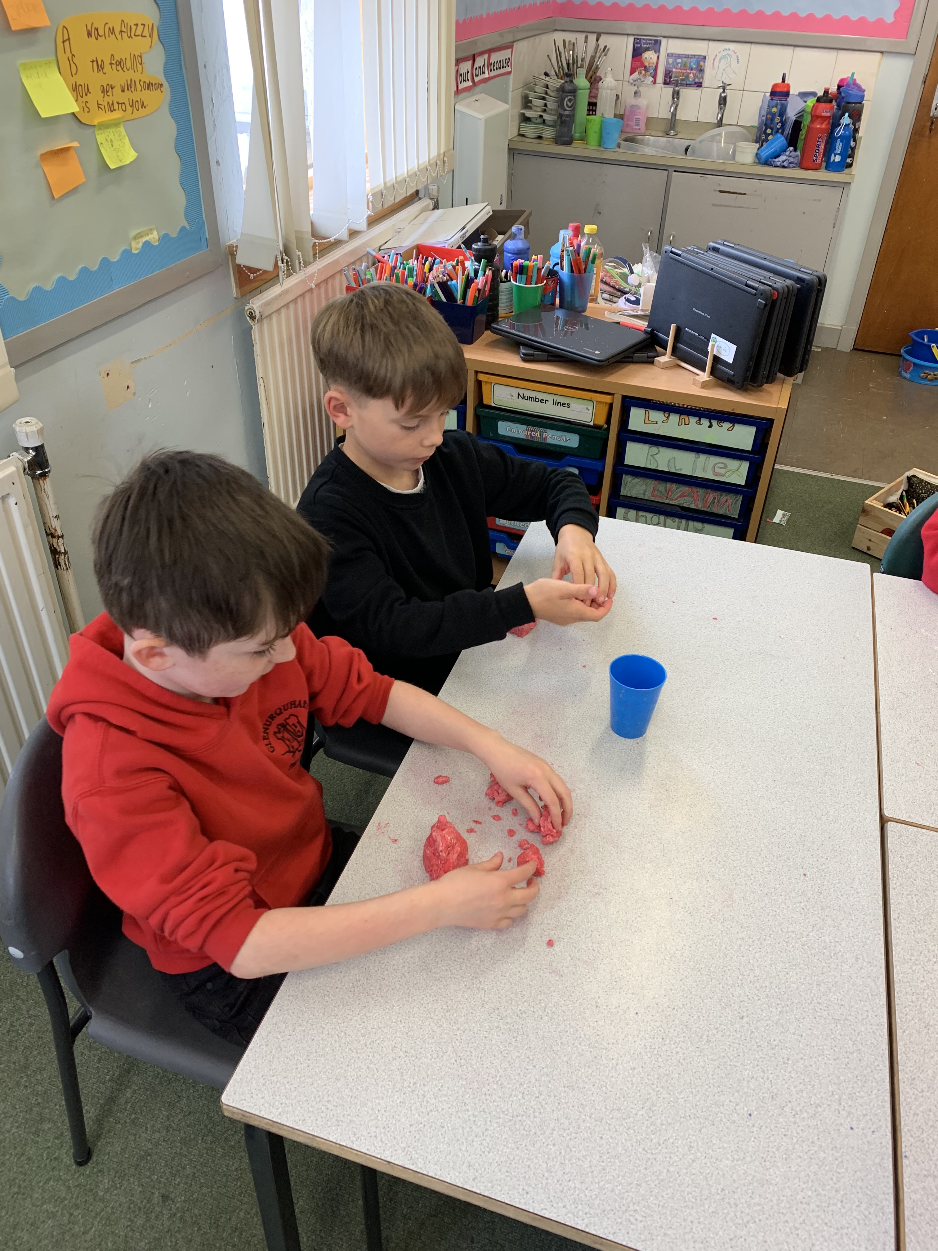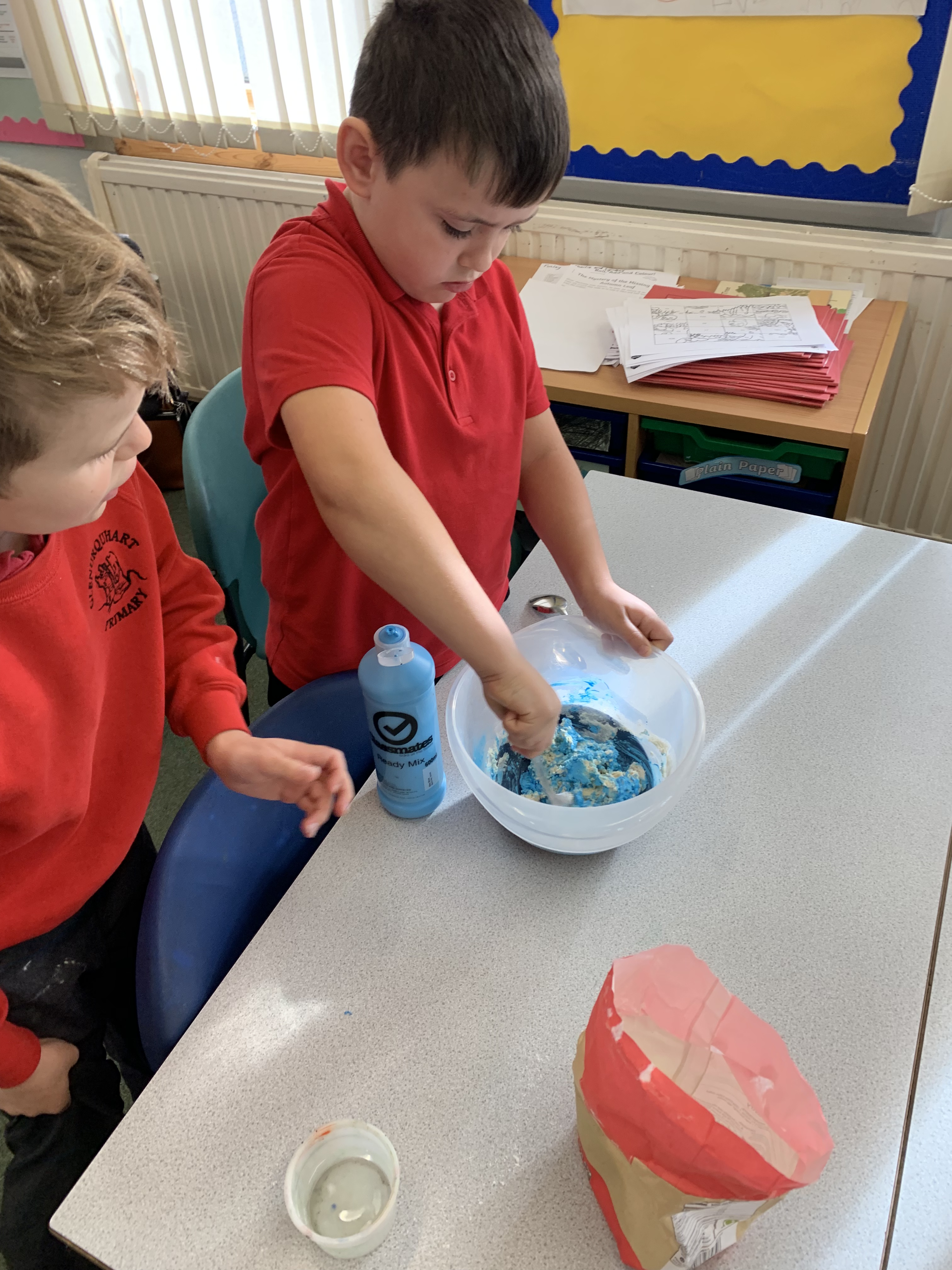 Today P4/5 have been using their creativity skills to create Titanic playdoh models. Each pair worked together to create a dough. They tried hard not to make the mixture too wet by adding just a little bit of water at a time. Here are some pictures of our work.